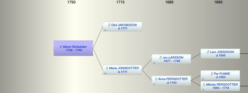 | 1749 | Maria Olofsdotter died | Stengärde, Näs (Z) | 343 | ||